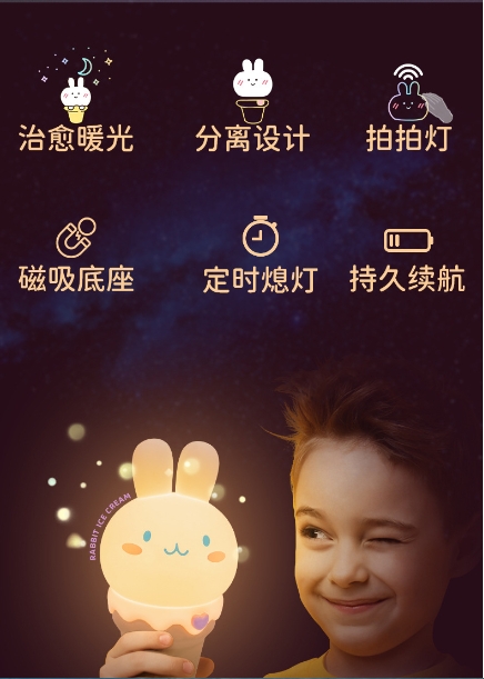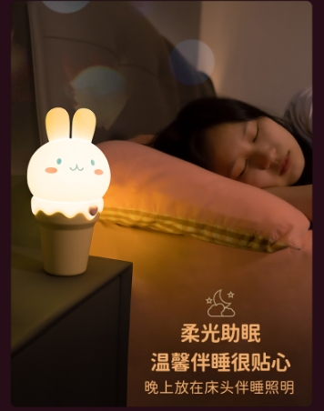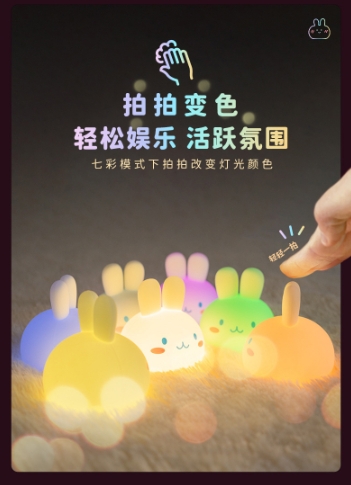 新品创意空气宝宝净化器小夜灯 趣味卡通兔硅胶拍拍七彩LED灯