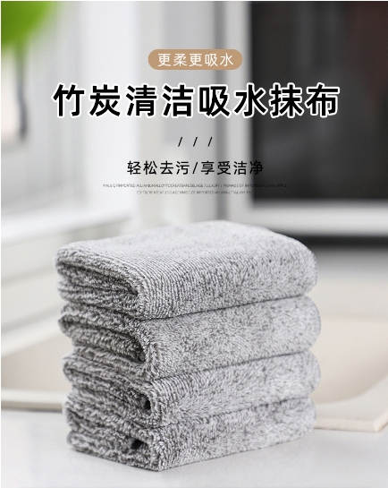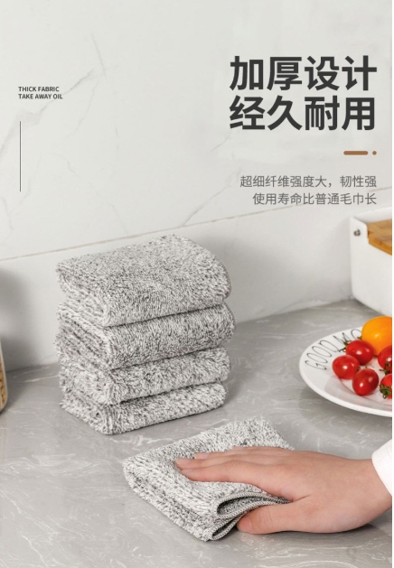 5条装日式竹炭洗碗布家用超细纤维厨房多功能吸水去油污懒人抹布